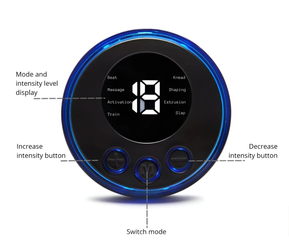 Seja para uma massagem relaxante após um longo dia ou para um tratamento mais intenso para aliviar tensões, o EMS Massage é a resposta. Com 8 modos e 19 níveis de intensidade, oferece uma experiência sob medida para o máximo de conforto e bem-estar.