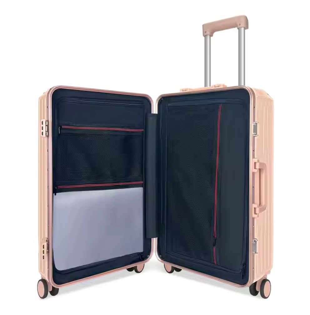 Costruita con una tripla combinazione di ABS + PC, questa valigia è antigraffio, resistente agli urti e all’usura. Il tubo in lega ispessito assicura una struttura stabile e solida, con regolazione dell’altezza a più livelli e minima oscillazione. Affronta ogni viaggio senza preoccupazioni.